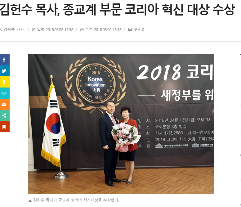 국민 미션어워드 수상(국민일보)